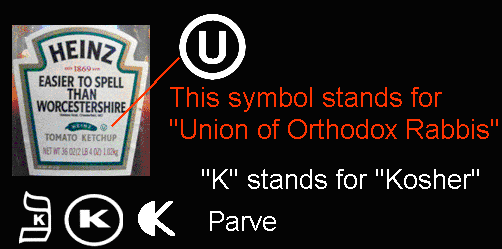 The Kosher Food Tax is the biggest consumer fraud existing in America. Examine every item in your cupboards for either the (U) or (K) labels. These symbols represent a Jewish "blessing" and when these small symbols are detected, it means that you have unwittingly paid a tax to a Jewish religious group. They will not always be on the front of the package; they may be hidden amid the small print near the label's seam. This cryptic code has to do with a Hebrew "secret," a heist, which illuminates the Jews' power in the United States.
