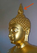| "Ushnisha" is known as “flame of invisible light” sat upon the head of the Buddha or Buddhist holy man indicating divine intelligence.