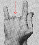 To open the base chakra, place your hands in the position shown in the photo, like the sign of the horns. Your finger pads should be touching and your thumbs should be touching side by side down to the fleshy part known in palmistry as the "Mount of Venus." This mudra produces a heat sensation in the hands and stimulates the base chakra. Don't worry if you cannot feel the heat sensation as this takes sensitivity.